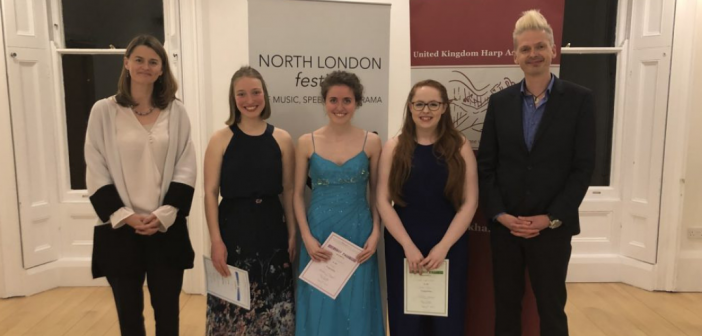Claudia Lamanna won first prize in the Camac Harp Competition held May 5–6 as part of the 2019 North London Festival of Music, Speech, and Drama. Second prize was awarded to Mared Pugh–Evans, and Lise Vandersmissen took home third. “I was very grateful to win the competition,” says Lamanna. “This past semester [at the Royal Academy of Music], I studied some pieces that I loved very much, so I thought that this competition would be a good occasion to try them out.”